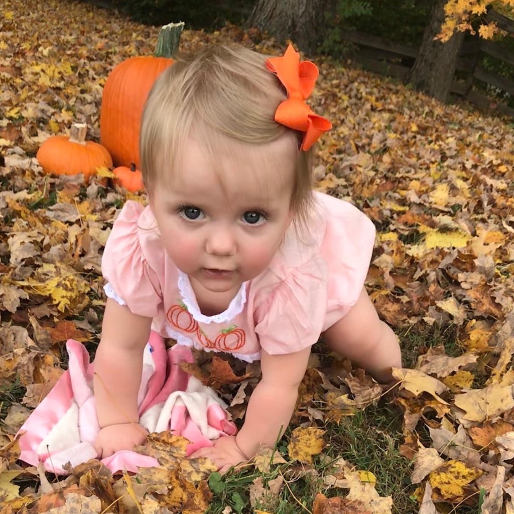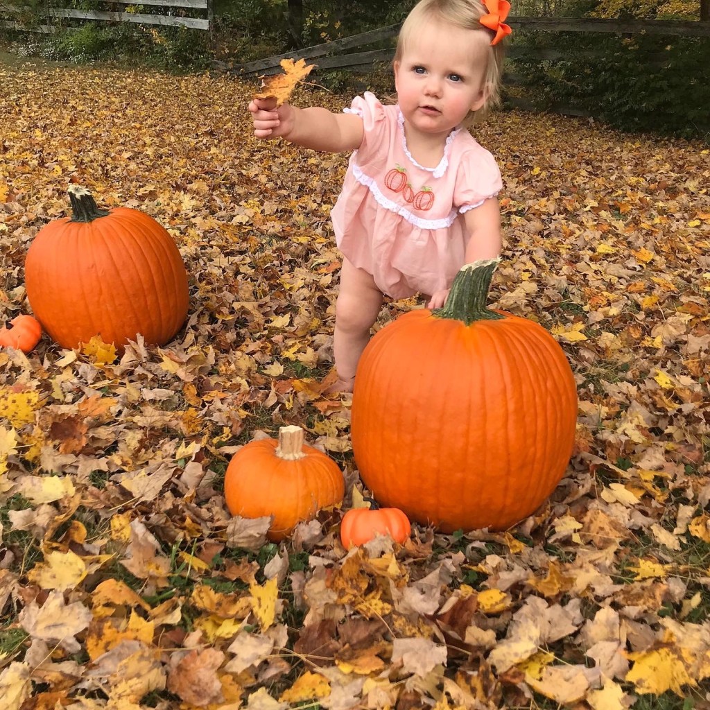 I also took some pictures of Abby in our yard with pumpkins since we didn’t get to go to a pumpkin patch this year!