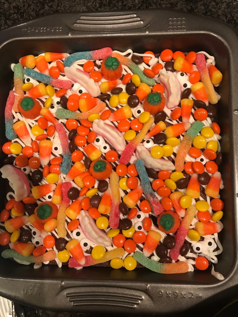 Our family was responsible for the dessert and we made Halloween Brownies!