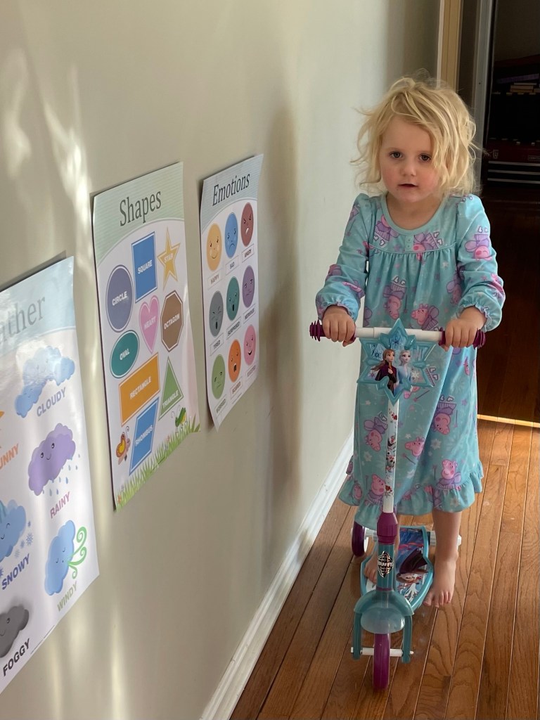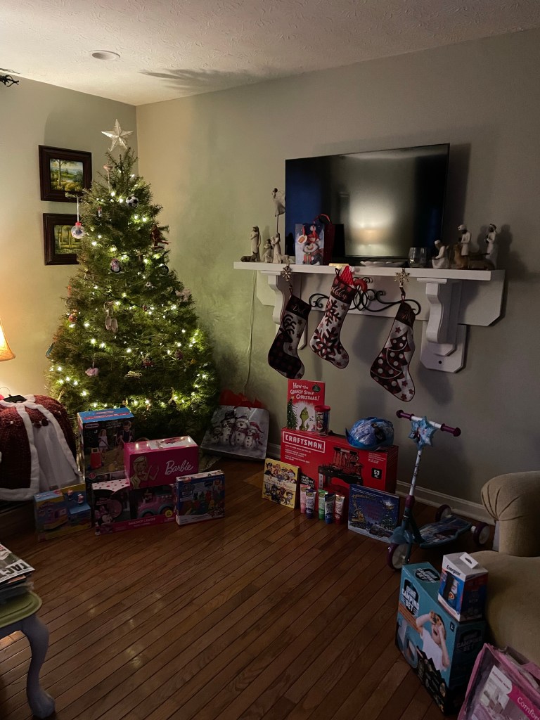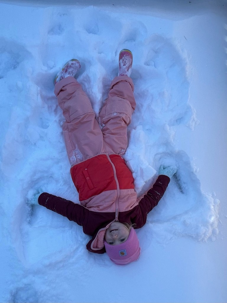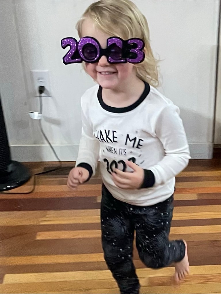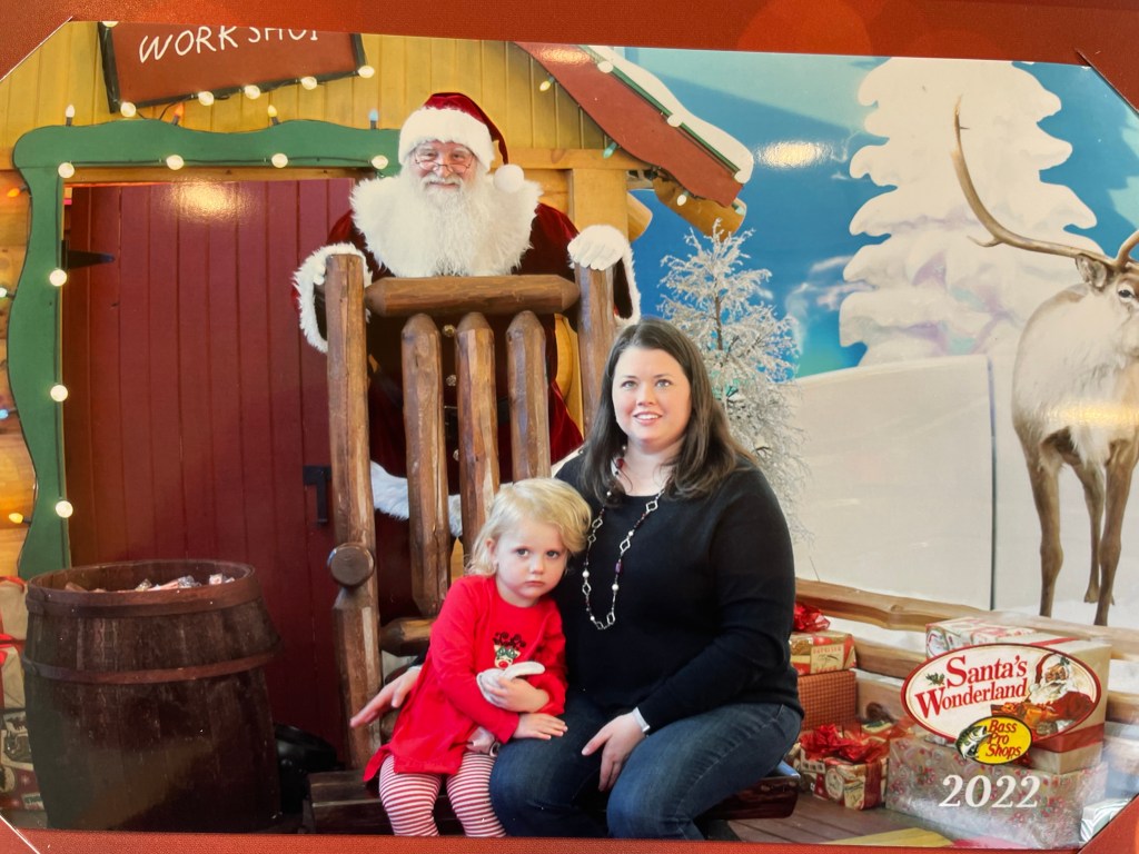 We started with a Santa visit. She was so excited to see him but got shy once she saw him up close.Santa was at bass pro shop so at least she got to visit the fish! We went to have Christmas with Jennifer’s side of the family and Abby really enjoyed being with her cousins!The oldest three really love each other and played until they dropped.A park near her Nana’s (Jennifer’s Mom) house had a huge light village that we walked through. Abby loves Christmas lights!Abby made a gingerbread man!And snowmen ornaments using her handprint. We had a white Christmas! Abby loved playing in the snow.She made snow angels and said, “They are saying happy birthday to God.” 🥰We just sat all her presents out the night before Christmas. She was overwhelmed with all the gifts.Her number one thing that she wanted from Santa was a “Frozen Scooter.” And she has been riding it all over the house. The Peppa pig scooter that the White family sent was passed on to her best friend, Ivy. The too of them have loved riding them together.We had Christmas dinner with Shawn’s Family where she got even more presents.Abby’s Christmas dress came with a matching dress for her doll who she has named Dolly.She got a basket ball hoop for Christmas and she is getting pretty good. He was her fist basket!We rang in the new year at home.Her shirt says “wake me when it’s 2023” but I couldn’t get her to stay still long enough to get a good picture. She is always on the move!Abby has become a very good artist! This is her self portrait!She also really loves her Dolly, especially when their clothes match!