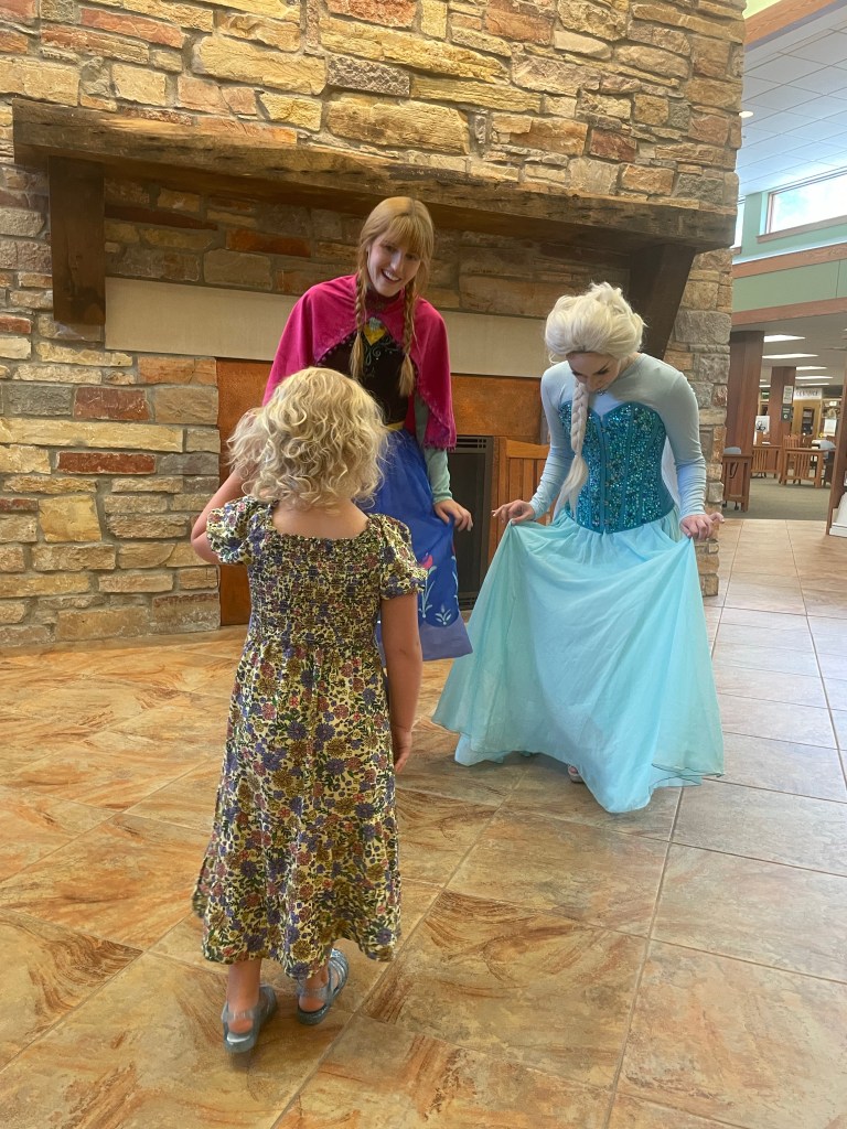 As I said before, she is very cautious and it took her the whole event to warm up to saying hello to Anna and Elsa (from Frozen). I was so proud of her! She was afraid but keep trying because it was important to her.