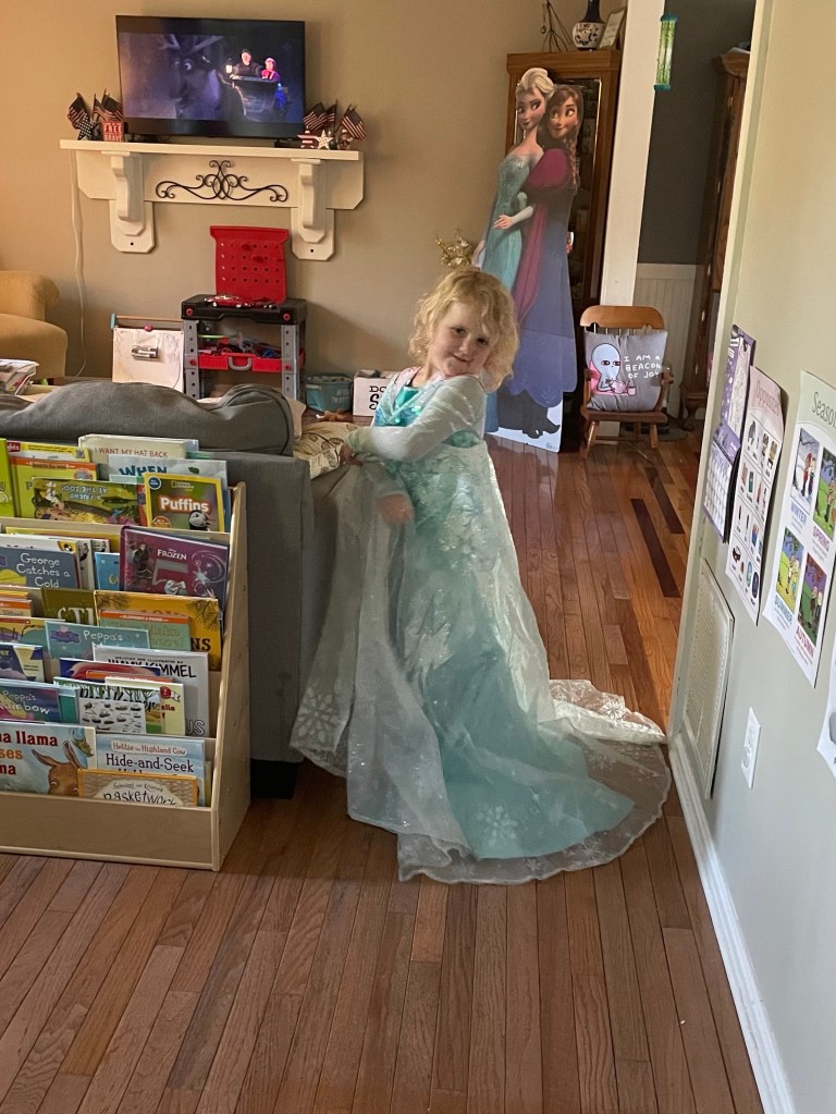 Abby is planning on being Elsa for Halloween and having a Frozen themed birthday party. We watch Frozen almost daily in our house.