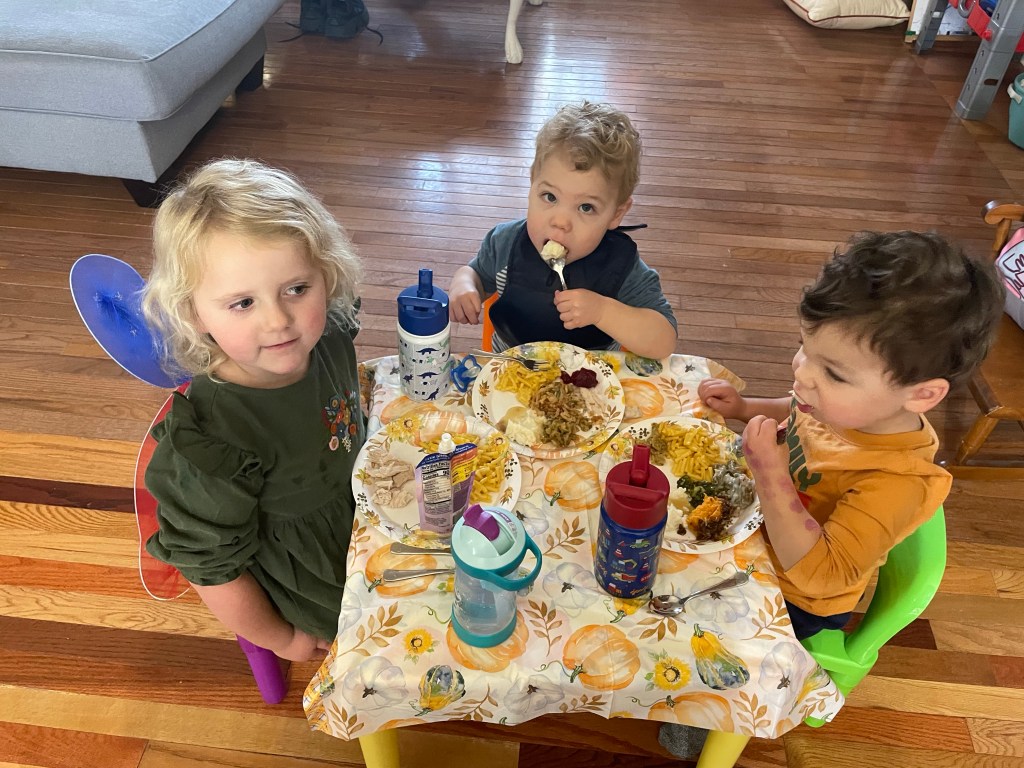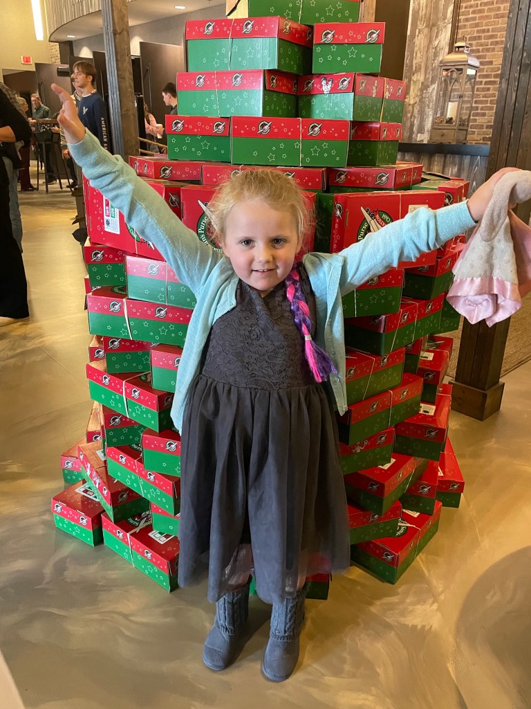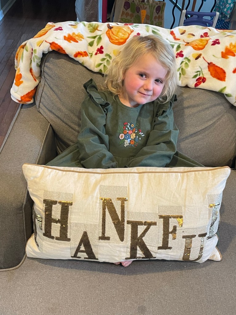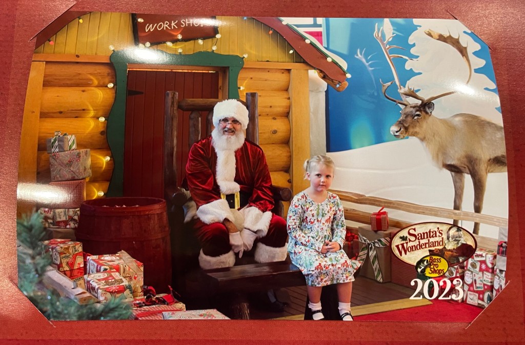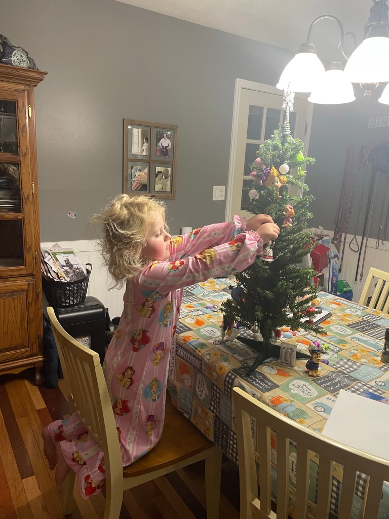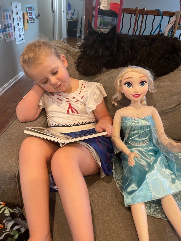 Here is Abby in her Thanksgiving DressJennifer’s Parents came to Thanksgiving Dinner which was hosted at our house.We also invite family friends over on Thanksgiving every year. Here is the kids table.The day after thanksgiving we went to visit Santa. When asked what she wanted for Christmas she told Santa, “check my Amazon wish list.” Haha!Next we went to see the movie Wish. She loved it! (Yes, she is wearing the character Asha’s dress)The Sunday after Thanksgiving, we went to pick out a Christmas tree. We usually go cut down a tree but we couldn’t make that work this year.This year, Abby will also have a little tree in her room. She loves it and is more excited about this little fake tree than the big live one in our living room. Abby’s favorite holiday is Christmas! She loves all the lights and “flatables” as calls them (the outdoor inflatable decorations).We also put together a box for a kid in another country who doesn’t have as much (operation Christmas Child through out church). Abby is thoughtful and caring and likes helping others.This is Abby’s first school project! She made it mostly on her own (Mom might have helped a little). It is a poster all about herself.This is just a cute picture of Abby reading to Elsa and our dog, Isla. She can’t read yet but she has several books memorized.