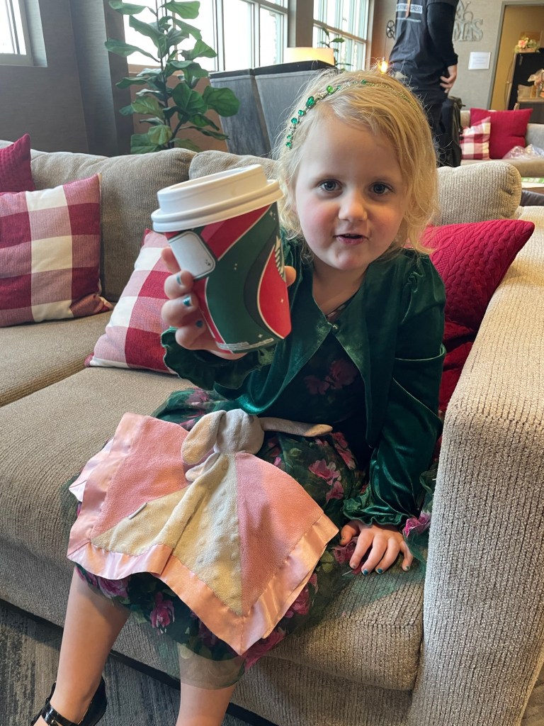 This is Abby enjoying hot chocolate before the Christmas Eve service.