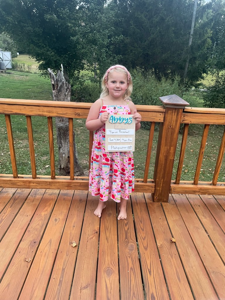 With her October birthday Abby didn’t make the cut off to start Kindergarten so we are doing one more year of Preschool. She will go three mornings a week. She loves school and is so excited to start!