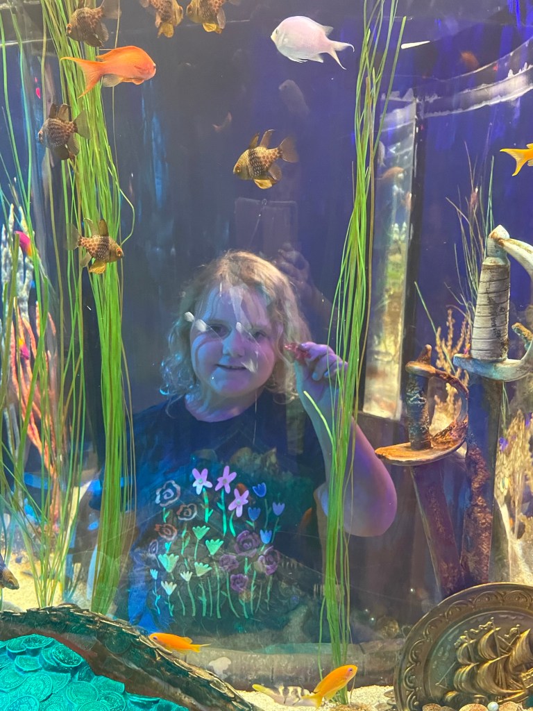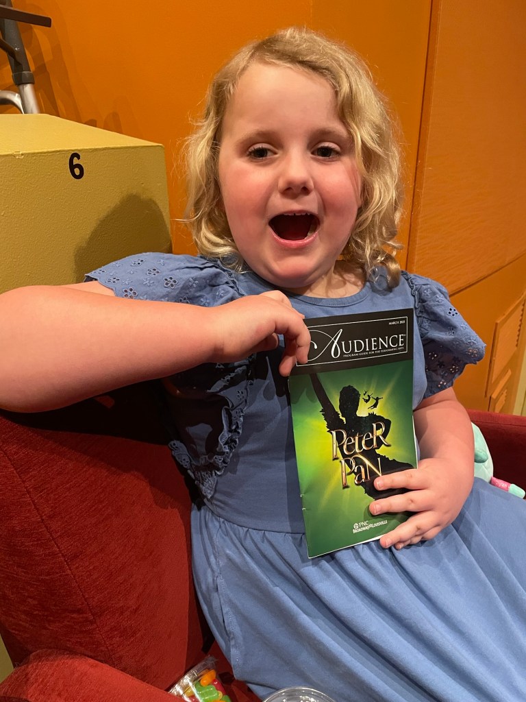 We started Spring Break by seeing Peter Pan the musical.Abby loved it!Abby loves to play beauty shop (services include hair brushing, face jewels, make up, and nails).We also went to the aquarium. Abby loves the tanks where you can “go inside” the tanks.We also went to see Disney on Ice which was fun. Abby was disappointed that the little mermaid wasn’t featured but liked it other than that.It has been very windy and she has enjoyed flying kites.