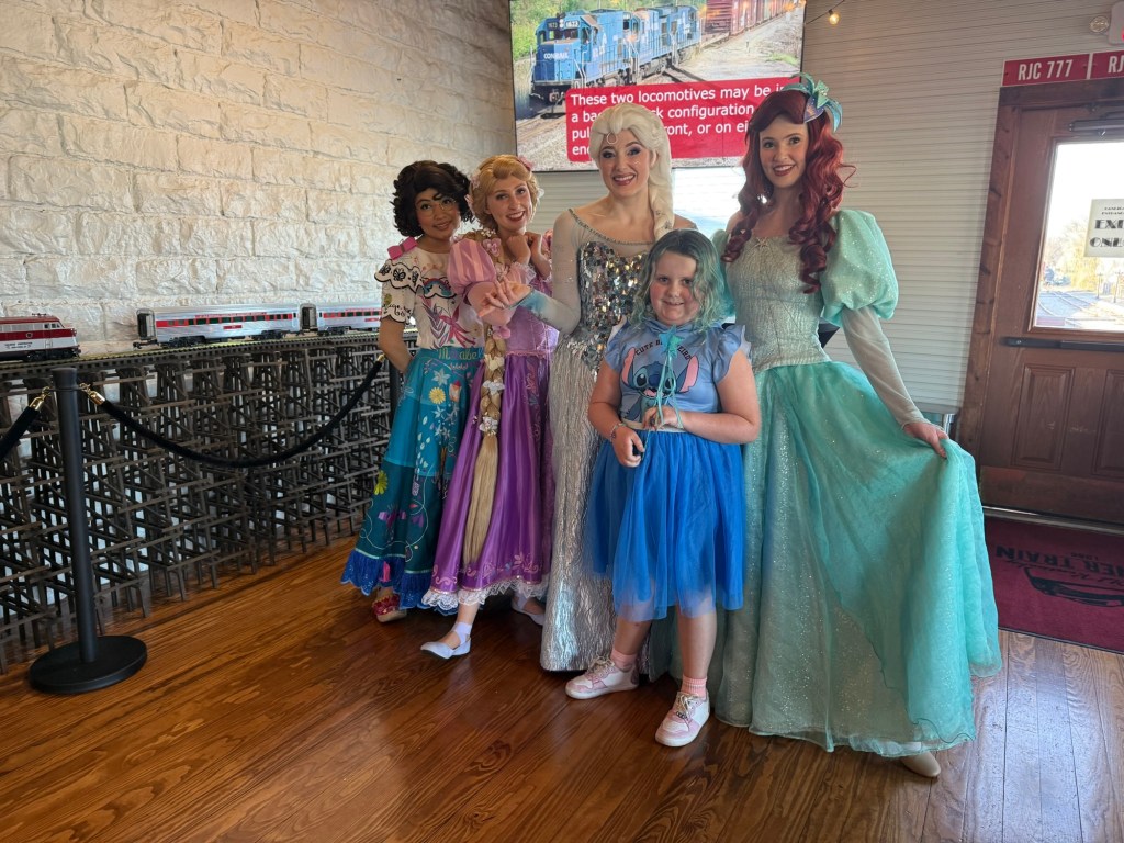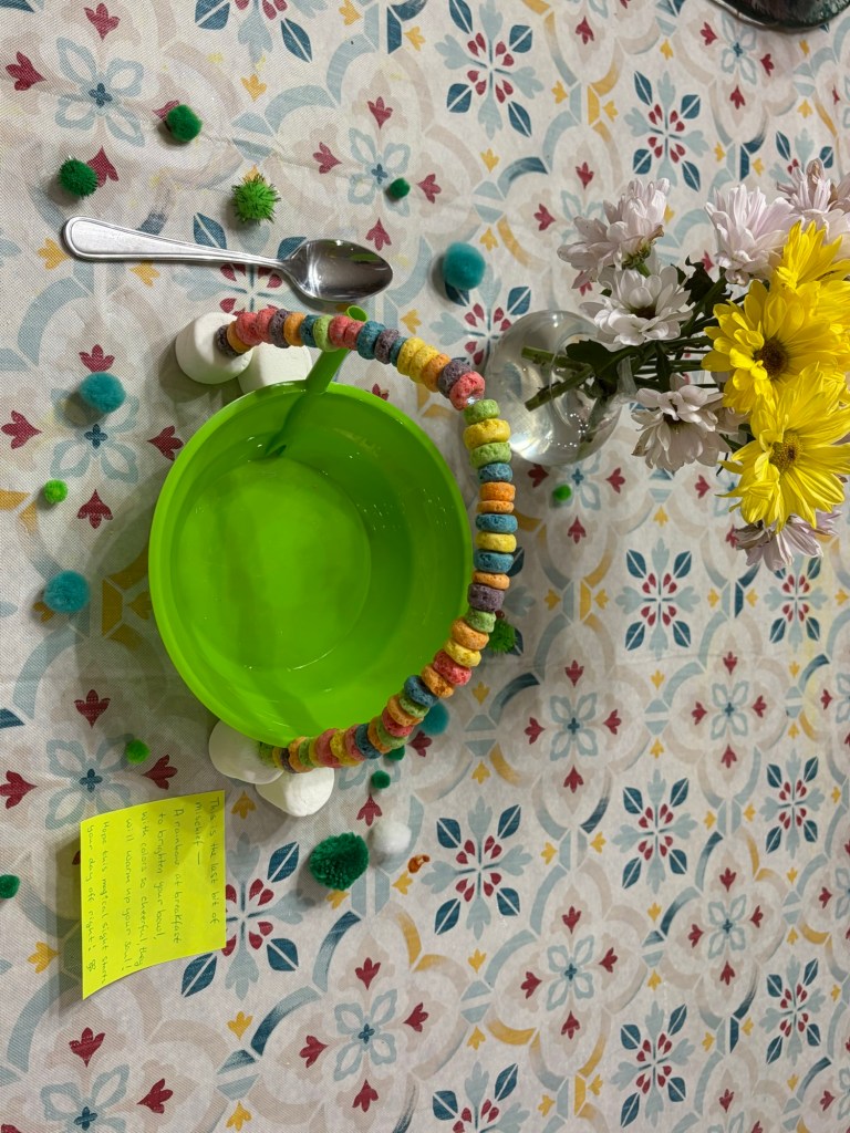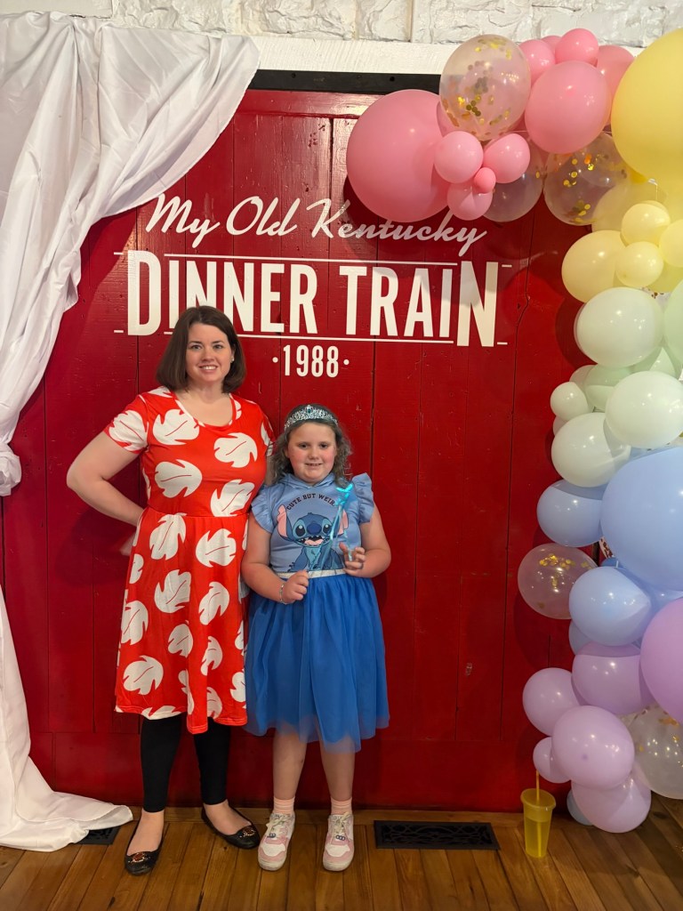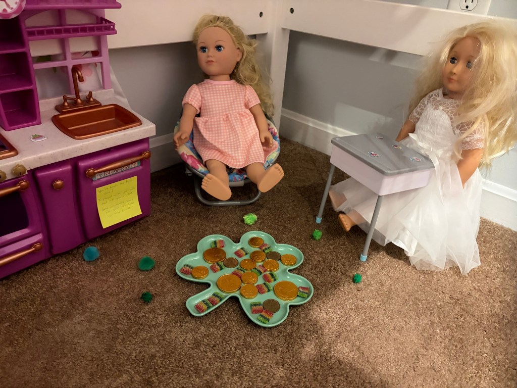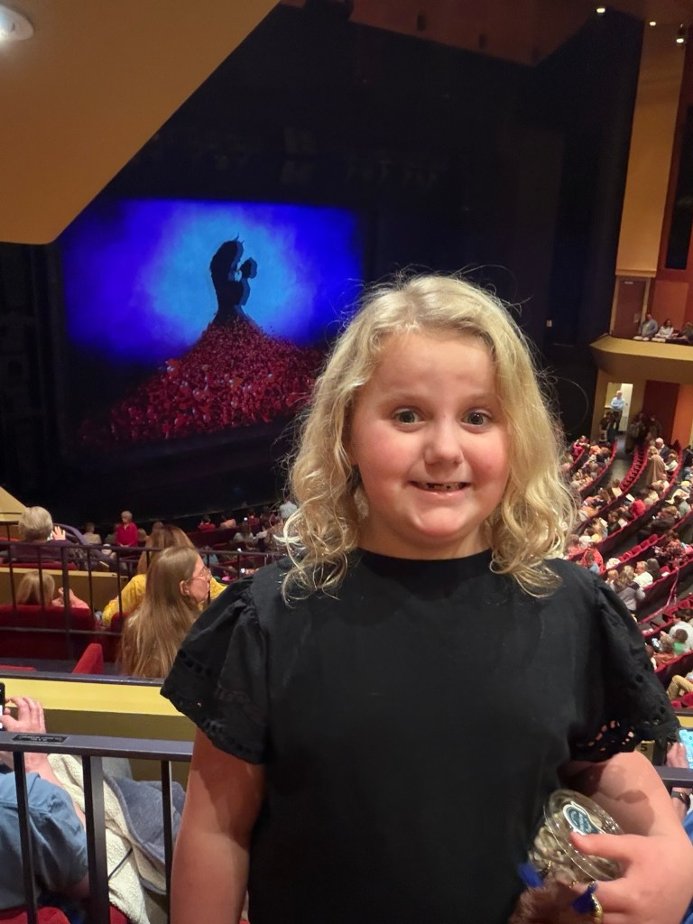 We have gone to Two live performances this month. The first was a community theater production of Frozen Jr.The second was a broadway production of Beauty and the beast the musical.We also took a dinner train ride and had tea with the Disney princesses. This was her first train ride!Abby wanted to dress as “Princess Stitch” so of course I went as Lilo!We also went to see the movie Hoppers which was really cute.The night before St. Patrick’s Day, Abby set a trap to try to catch a leprechaun . She made sure it had soft bedding inside the trap so that the Leprechaun wouldn’t get hurt. She is a very sweet girl!The leprechaun had lots of mischief to spread around our house. He also left some green pee in the toilet.Her favorite was the green milk for her cereal.Abby got to go to the birthday party of one of her school friends. They all love K-pop Demon Hunters!