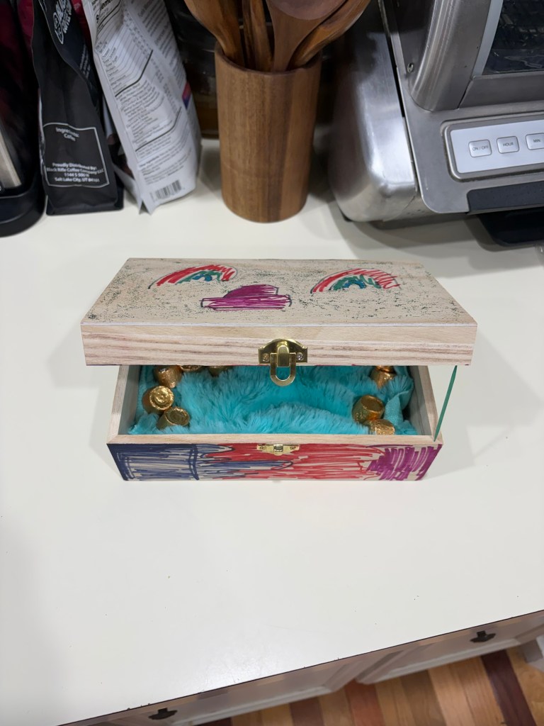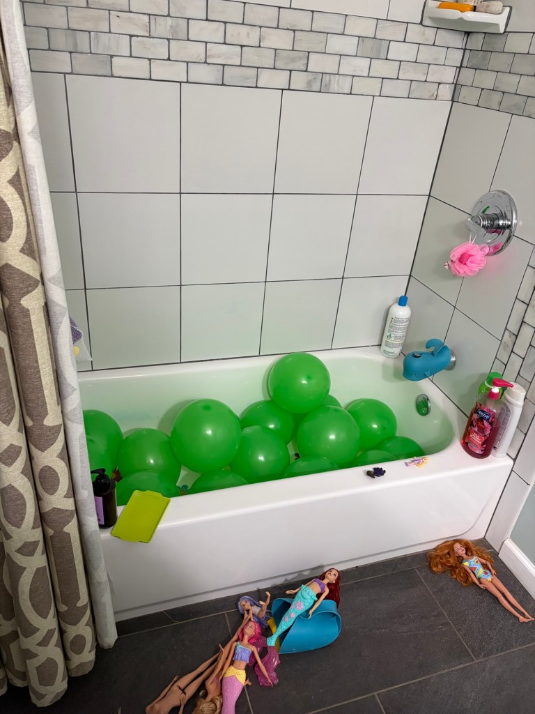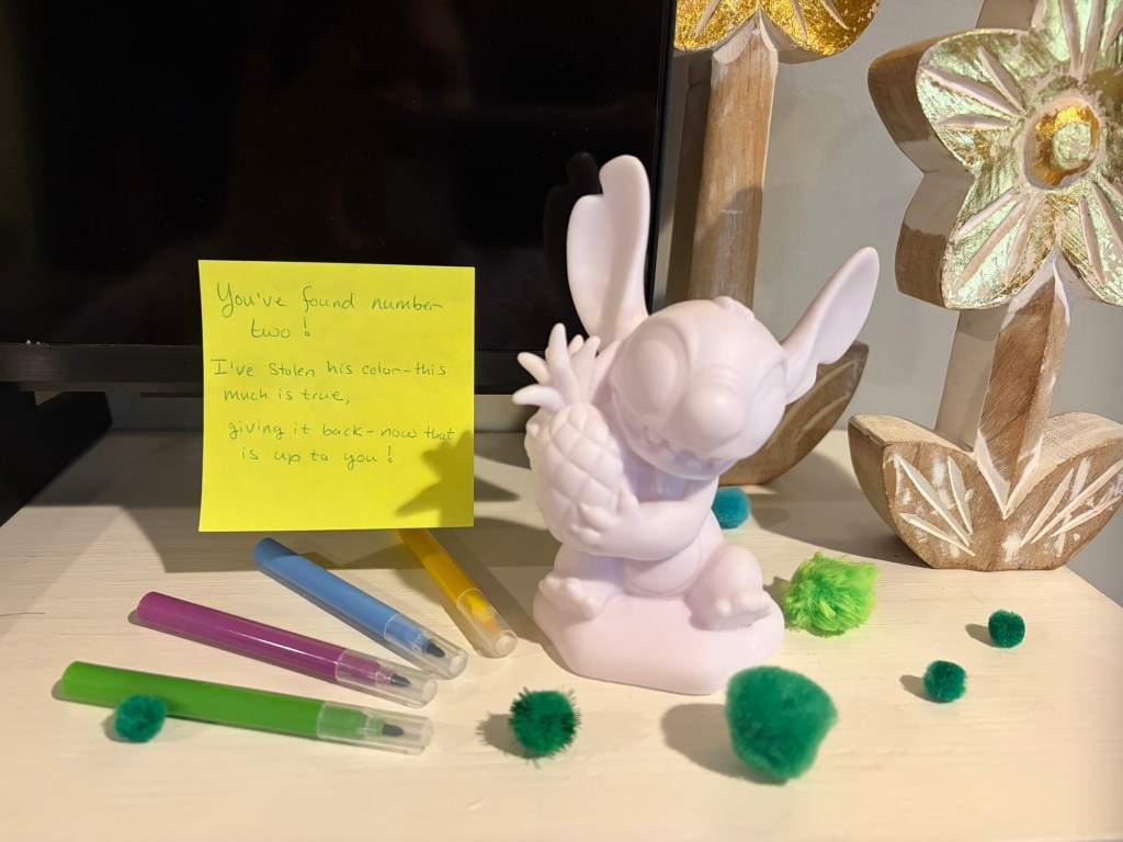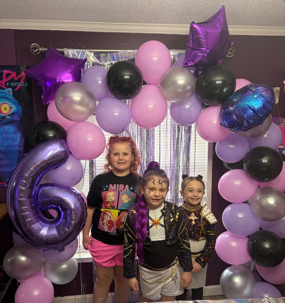 We have gone to Two live performances this month. The first was a community theater production of Frozen Jr.The second was a broadway production of Beauty and the beast the musical.We also took a dinner train ride and had tea with the Disney princesses. This was her first train ride!Abby wanted to dress as “Princess Stitch” so of course I went as Lilo!We also went to see the movie Hoppers which was really cute.The night before St. Patrick’s Day, Abby set a trap to try to catch a leprechaun . She made sure it had soft bedding inside the trap so that the Leprechaun wouldn’t get hurt. She is a very sweet girl!The leprechaun had lots of mischief to spread around our house. He also left some green pee in the toilet.Her favorite was the green milk for her cereal.Abby got to go to the birthday party of one of her school friends. They all love K-pop Demon Hunters!