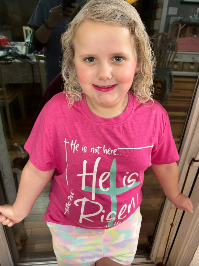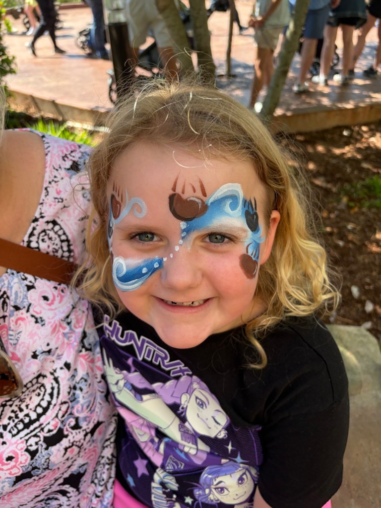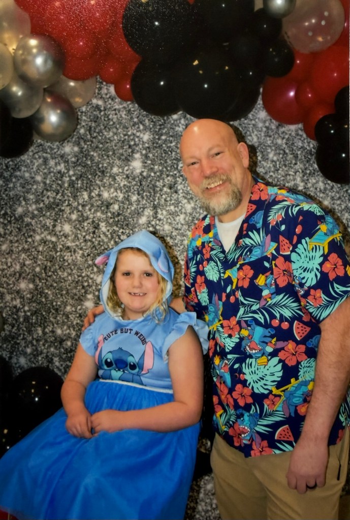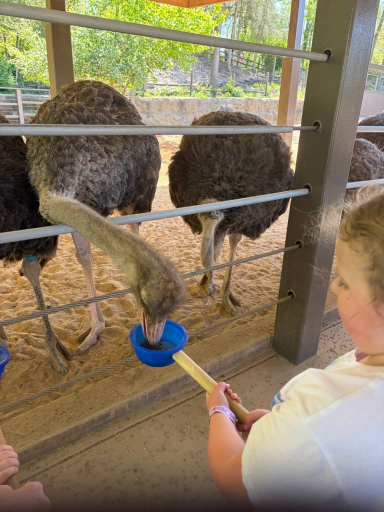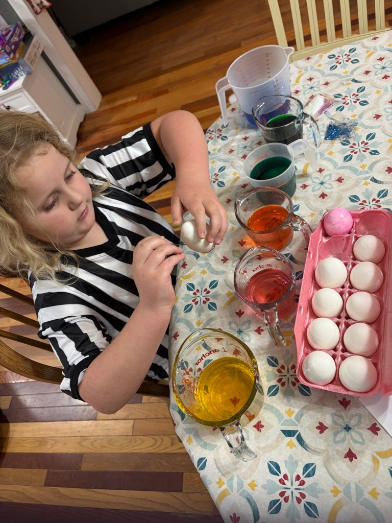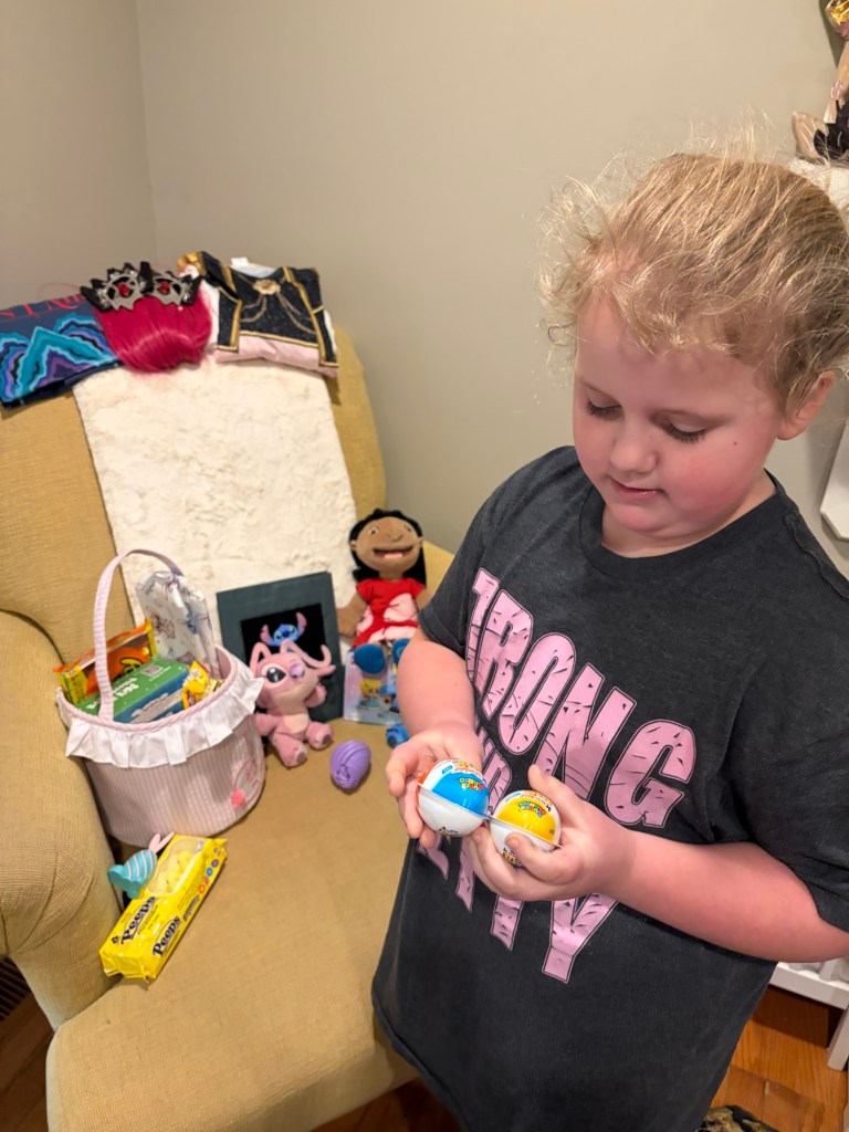 This is another school dress up day where she dressed up like her Nana (Jennifer’s Mom). She is just too cute not to post!We went to church on Easter and Grandpa (Shawn’s Dad) joined us.And the Easter bunny brought her a bunch of stuff!Her favorite thing in her Easter basket was a mermaid tail for the pool.We did all the normal Easter things like dying eggs . . .And having our annual Easter egg hunt with her friends.We also had lunch and a did a craft during our Easter party.Over Spring Break we visited a cat cafe. Abby says she wants to work at a cat cafe when she grows up.We also went to Knoxville for a few days and went to the Knoxville Zoo with her cousins.She got to feed a giraffe and ostrich.See some animals. . . ride on the zoo train . . .And play on animal themed playgrounds.We also went to Dollywood.We played games, rode a few rides, and Abby got her face painted.When we got back home, we went to Disney on Ice and all wore our stitch outfits!Last month, they had a Daddy/Daughter Dance at Abby’s school and we just got the pictures back.