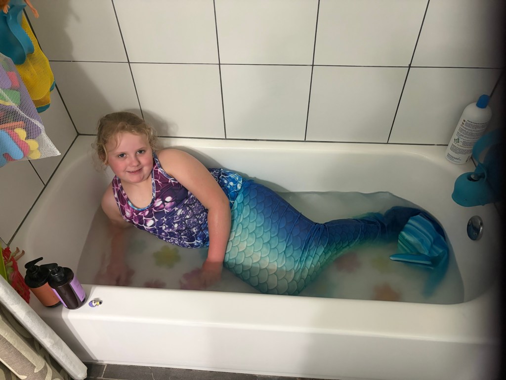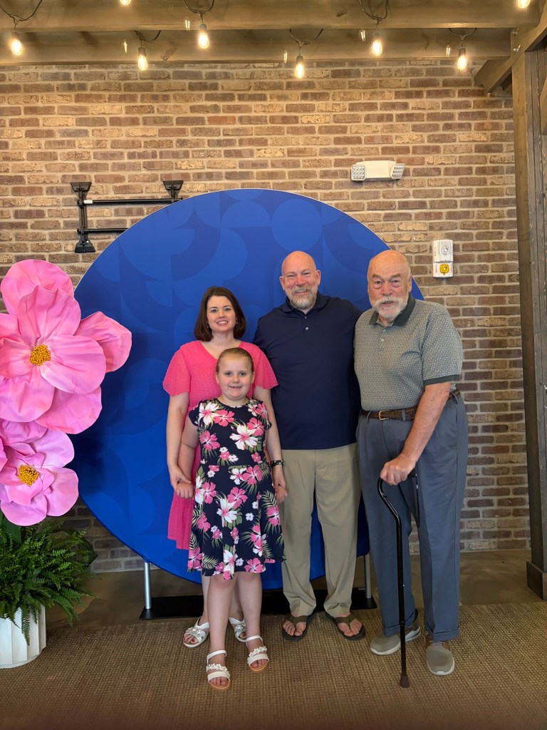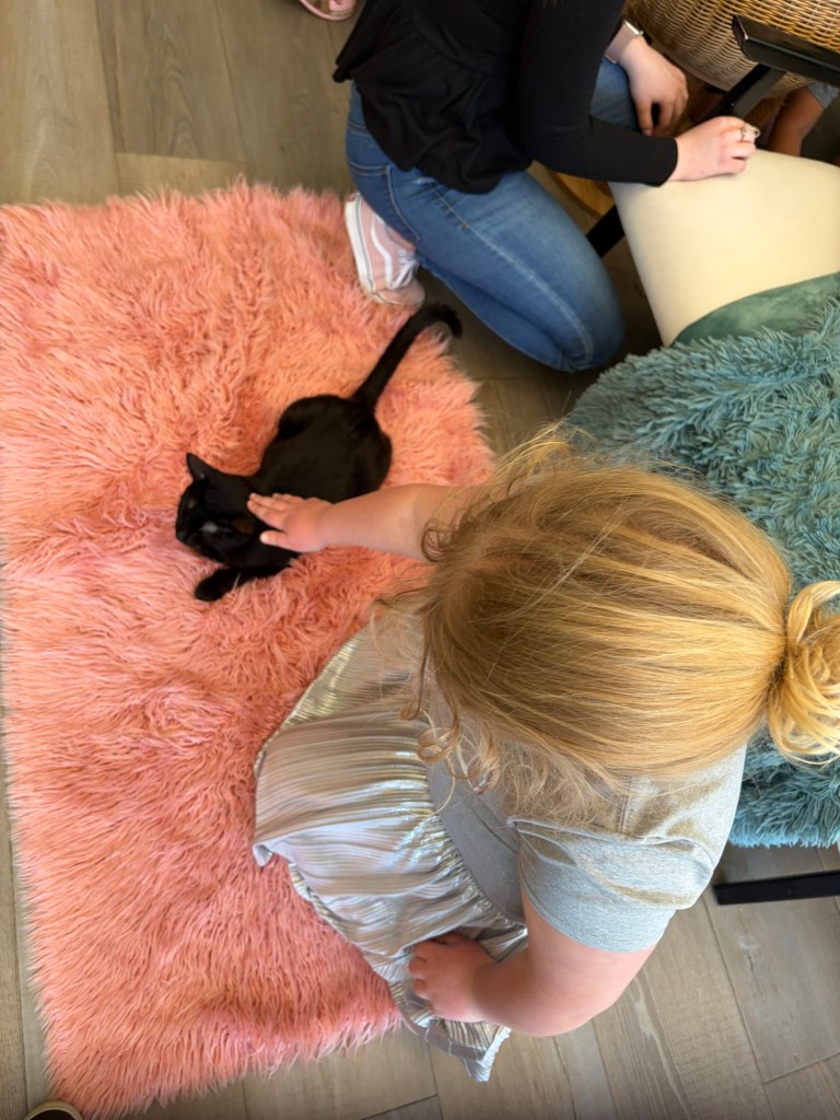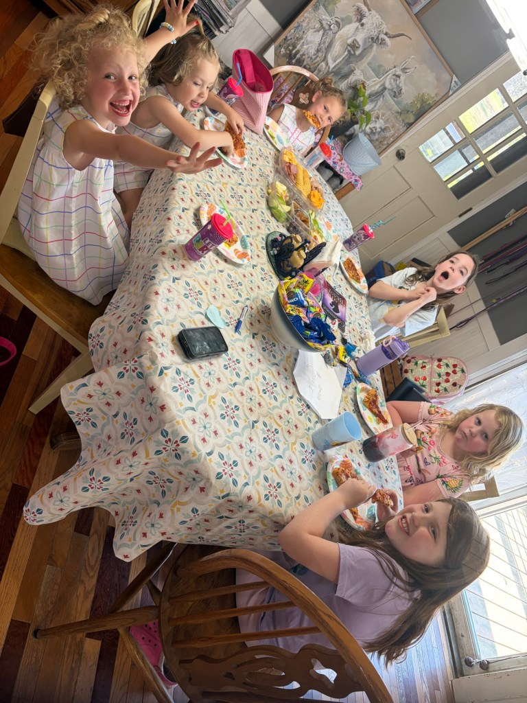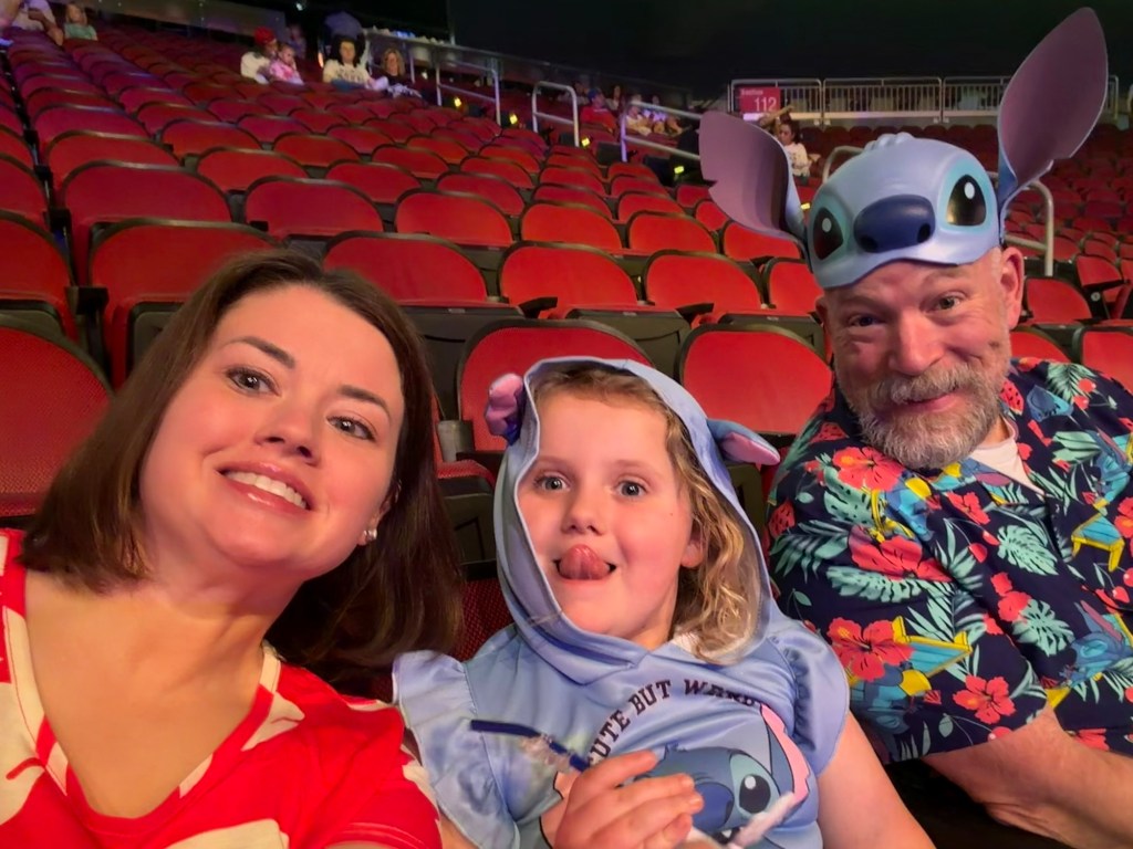 This is another school dress up day where she dressed up like her Nana (Jennifer’s Mom). She is just too cute not to post!We went to church on Easter and Grandpa (Shawn’s Dad) joined us.And the Easter bunny brought her a bunch of stuff!Her favorite thing in her Easter basket was a mermaid tail for the pool.We did all the normal Easter things like dying eggs . . .And having our annual Easter egg hunt with her friends.We also had lunch and a did a craft during our Easter party.Over Spring Break we visited a cat cafe. Abby says she wants to work at a cat cafe when she grows up.We also went to Knoxville for a few days and went to the Knoxville Zoo with her cousins.She got to feed a giraffe and ostrich.See some animals. . . ride on the zoo train . . .And play on animal themed playgrounds.We also went to Dollywood.We played games, rode a few rides, and Abby got her face painted.When we got back home, we went to Disney on Ice and all wore our stitch outfits!Last month, they had a Daddy/Daughter Dance at Abby’s school and we just got the pictures back.